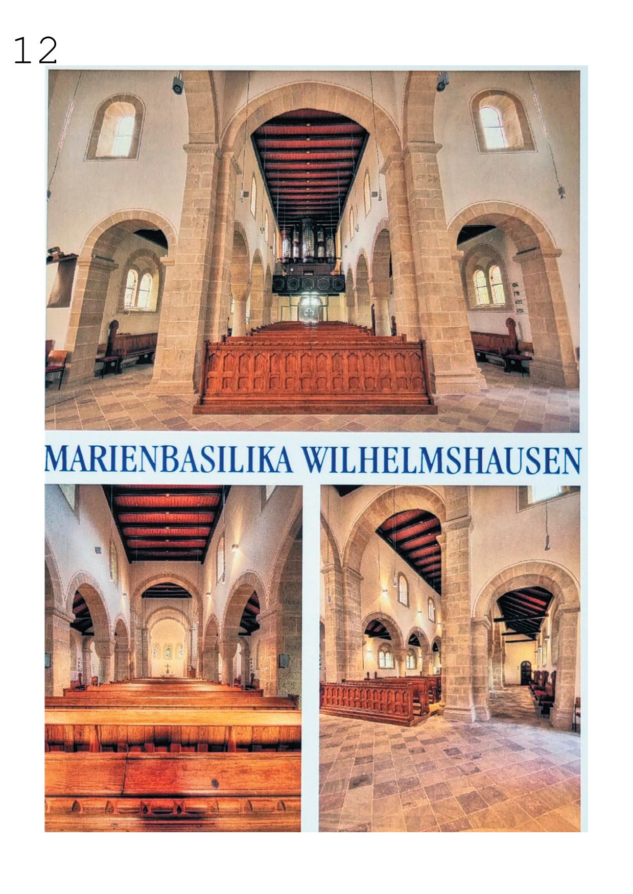 Im Jahre 2022 hat der Förderverein zwölf Ansichtskarten der Marienbasilika veröffentlicht, von denen drei die Reproduktionen von längst vergriffenen Karten sind, die 2010 unser langjähriger Vorsitzender Dieter Krausbauer nach seinen Entwürfen drucken ließ. Unsere Ansichtskarten liegen in der Marienbasilika in einem Präsentationsregal aus und können, ebenso wie die CDs mit Aufnahmen von unserer Krawinkel-Orgel, käuflich erworben werden (die kirchliche Spendenbüchse ist unsere Kasse des Vertrauens): 0,50 € je Karte und 10,00 € je CD. Dieses Geld kommt ohne Abzüge der Kirchengemeinde Wilhelmshausen zum Erhalt der Marienbasilika zugute!